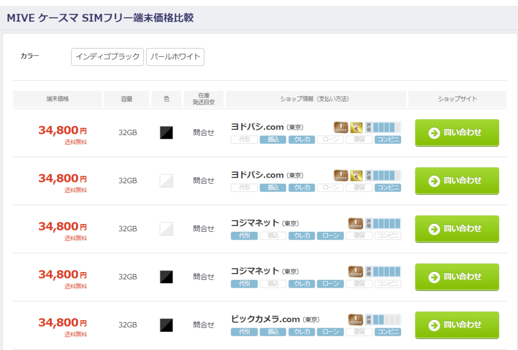 販売ショップによって価格差があるため、同じ端末でも価格が違う場合があります。