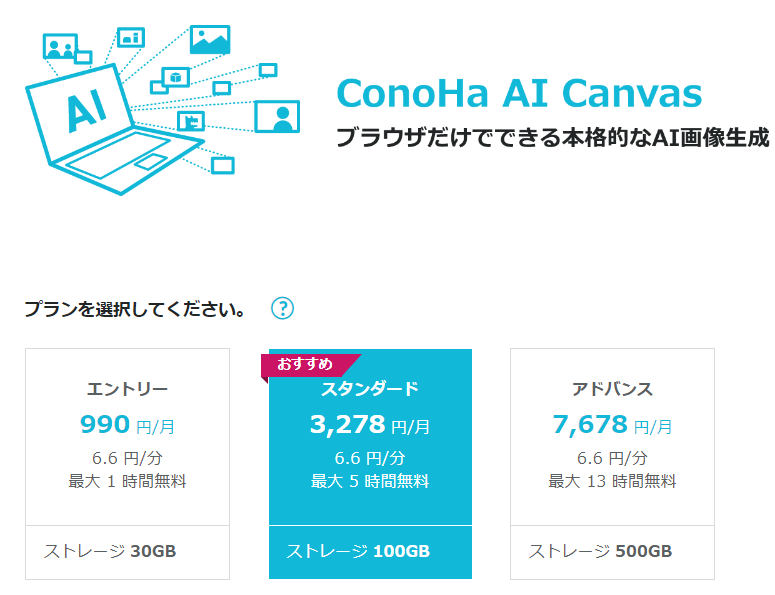 はじめてConoHa AI Canvasを使う人はエントリーコースでまずは練習してみましょう。