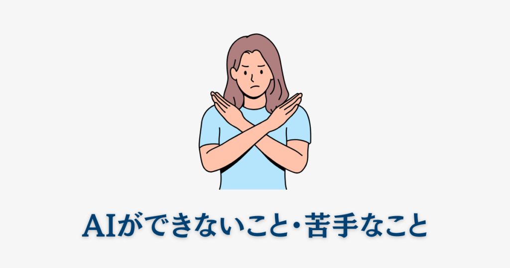 AIは便利だけれど、何でもできる万能な存在ではありません。実際に「これはAIにはまだ無理だな」と感じることも多くあります。