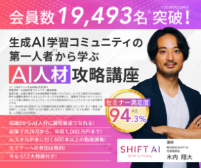 | 実施あり | オンライン | ・10大特典(ChatGPTプロンプト52選、AIキャリアロードマップなど) | |