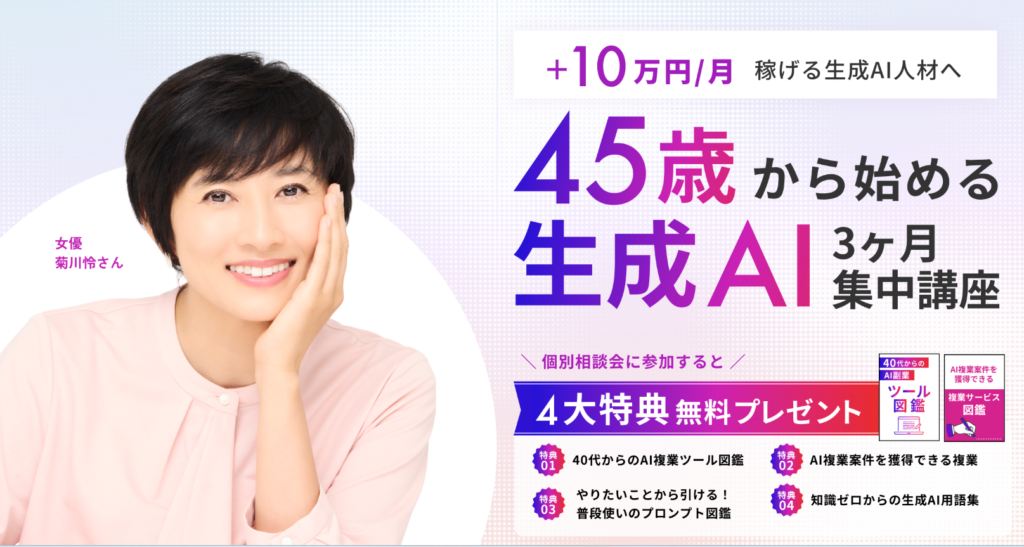 最短で「実務で使えるAIスキル」を身につけたい40〜60代に特化したと話題のライフシフトラボAIコース。
