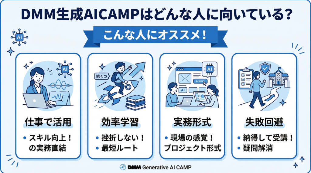 失敗したくない人ほど、DMM生成AICAMPは合っています。