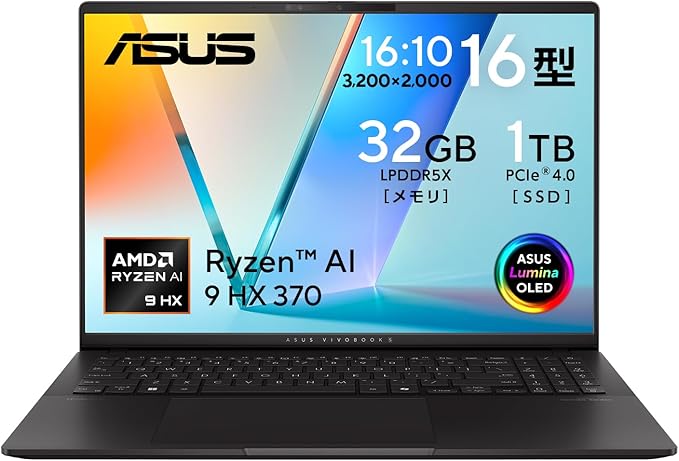 ASUS Vivobook S 16 は、16インチのディスプレイと高性能な仕様を備えたノートパソコンで、特にクリエイティブ作業や動画編集、AI画像生成に適しています。