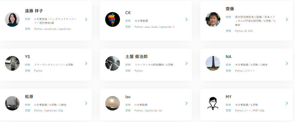 現役のエンジニアやデータサイエンティストがチューターとして学習をサポートしてくれるため、実務に近いアドバイスが受けられます。
