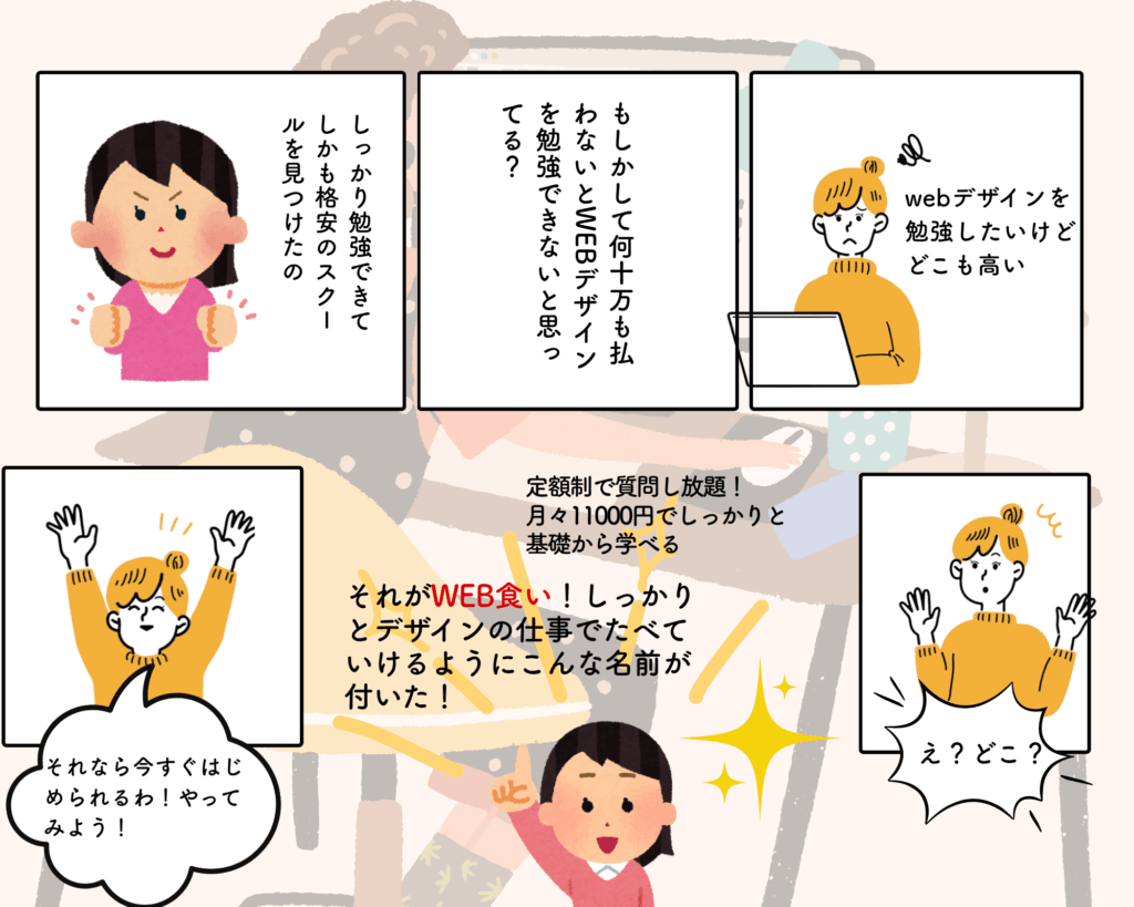 あなたの学びの第一歩を、『WEB食いオンラインスクール』がしっかり支えてくれますよ。