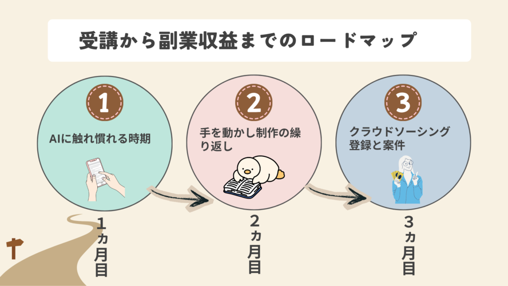 収益が出るまでの期間は、スクールの内容よりも、作業時間とアウトプット量で決まります。