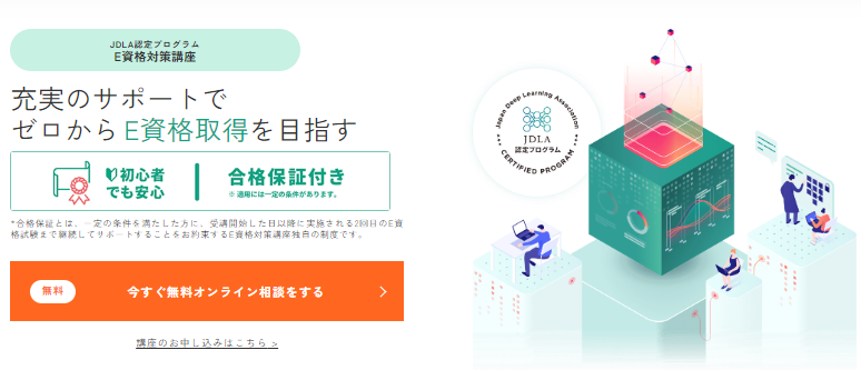 Aidemy Premium(アイデミープレミアム)の講座は日本ディープラーニング協会(JDLA)が定めるE資格の出題範囲と学習目標に完全準拠しています。