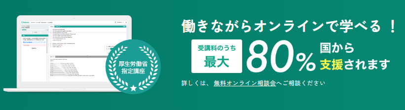Aidemy Premium(アイデミープレミアム)の講座は厚生労働省指定講座として認定されており、教育訓練給付金などを利用すると最大80%の受講料が国から支援されます。