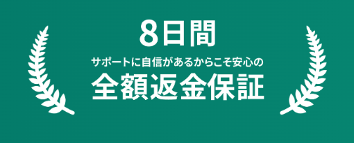 講座開始から8日以内であれば、全額返金保証を利用できます。