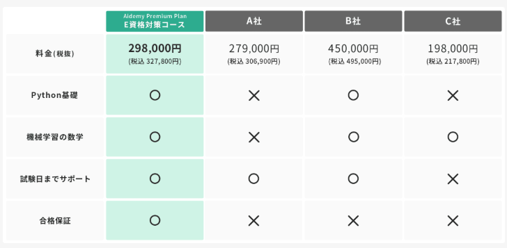 Aidemy PremiumのE資格対策講座の料金とコストパフォーマンス
