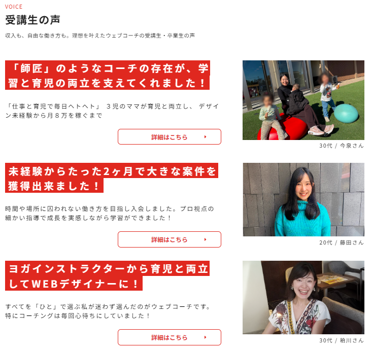 公式サイトだと受講生の感想がよりわかりやすく掲載されています!