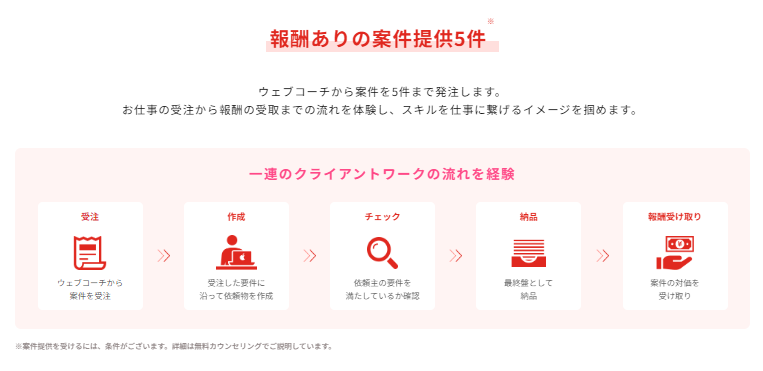 WEBCOACH(ウェブコーチ)の特徴のひとつが、受講中に案件提供があることです。
