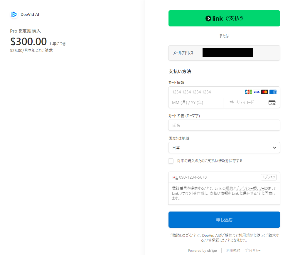 この画像では『Pro を定期購入 $300.00(1年につき)/$25.00/月を年ごとに請求』と明記されていますね。