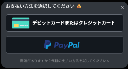 上のボタンはデビットカードまたはクレジットカードです。