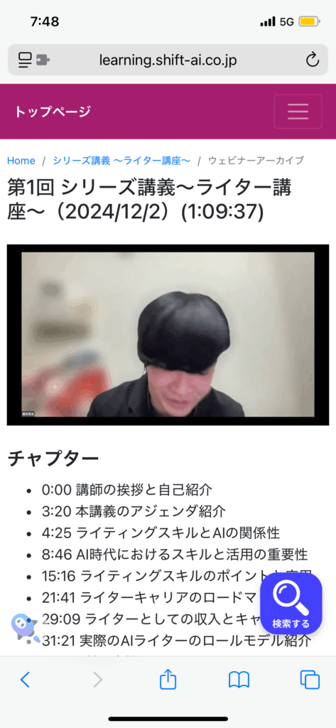 SHIFT AI(シフトエーアイ)は、体系立てて学べる動画と、毎週のように増えるライブ講義がセットになっているので、情報が古くならず学習が前へ進みやすいです。