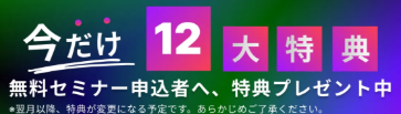 なにより無料セミナーに参加しただけでもらえる豪華特典がすごいんです。これ目当てで無料セミナーを受ける人も多くいるようです。