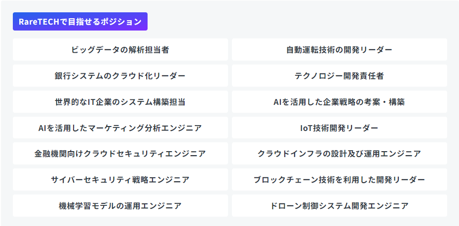 RareTECH(レアテック)卒業で得られるポジション
