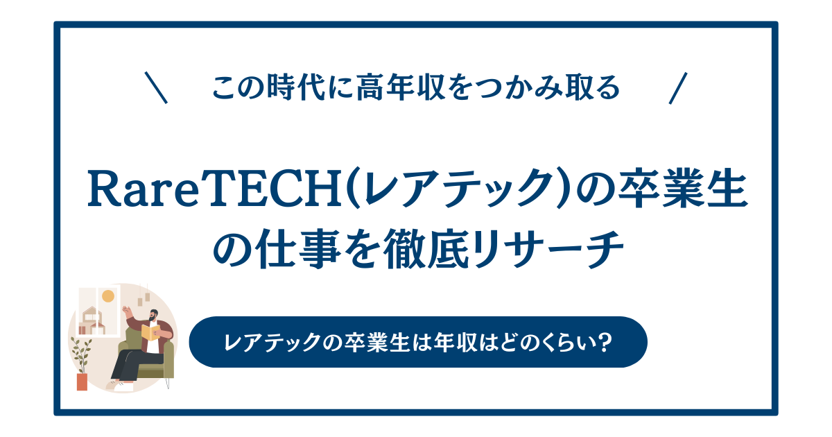 この記事では、RareTECH(レアテック)卒業生の具体的な就職先や年収について、実際の口コミや事例をもとに詳しく解説していきます。