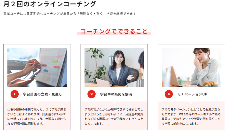 専属コーチが学習の迷いを拾い上げてくれるから、忙しい時期でも立て直しやすく、孤立しにくいのが安心材料ですね。