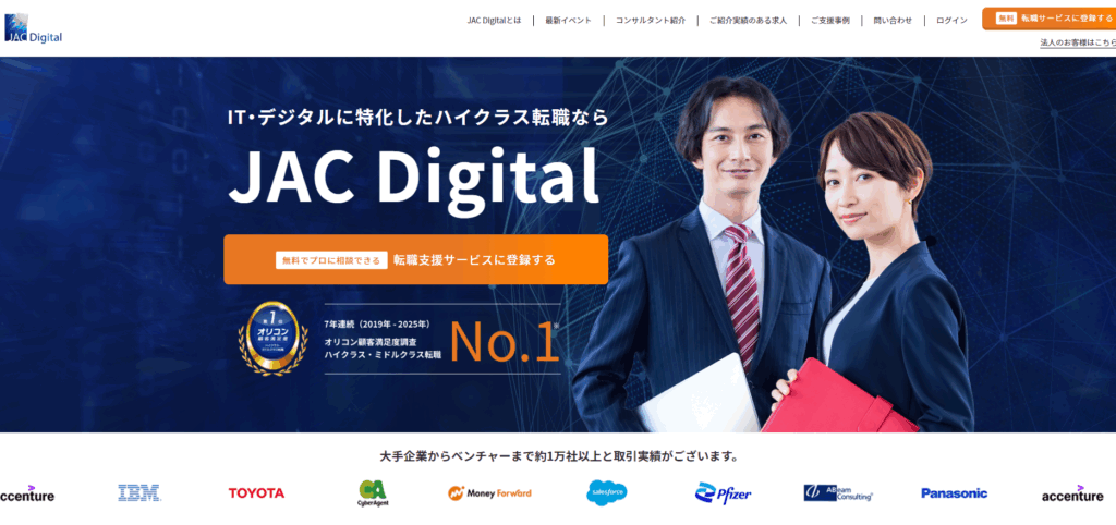 JAC Digital | ハイクラス | DX/IT戦略/マネジメント | 非公開 | 無料 | 非公開 | 非公開 | JAC内デジタル部門、海外転職可 |