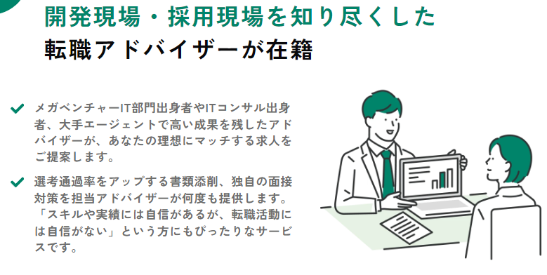 特にITエンジニアやITコンサルタントに特化したアドバイザーが対応しているため、単なる経歴の確認にとどまらず、プログラミングスキル・開発工程・得意分野など、専門的な視点からアドバイスを受けられます。