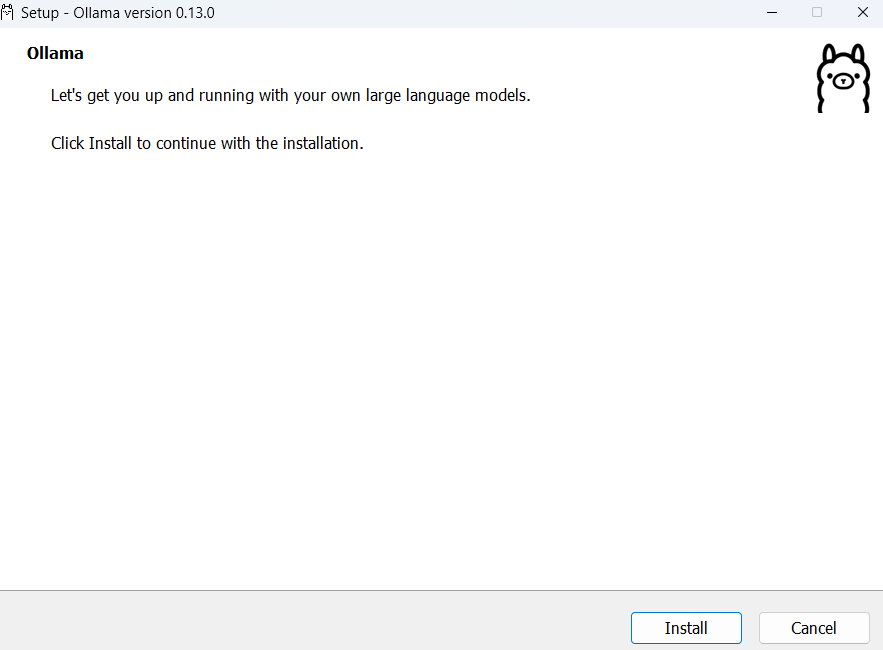 インストールが終わると、自動でPC内にOllamaが起動できる状態になります。