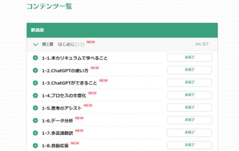 ChatGPTの基本的な使い方から始まり、七里式プロンプトの考え方、業務や副業への応用、最新機能への対応など、内容が少しずつ増えたり入れ替わったりしていきます。