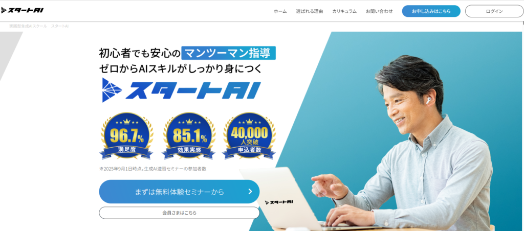 スタートAIは、AI初心者・中高年が仕事や生活でAIを使えるレベルまで導いてくれる講座という評価が多いです。