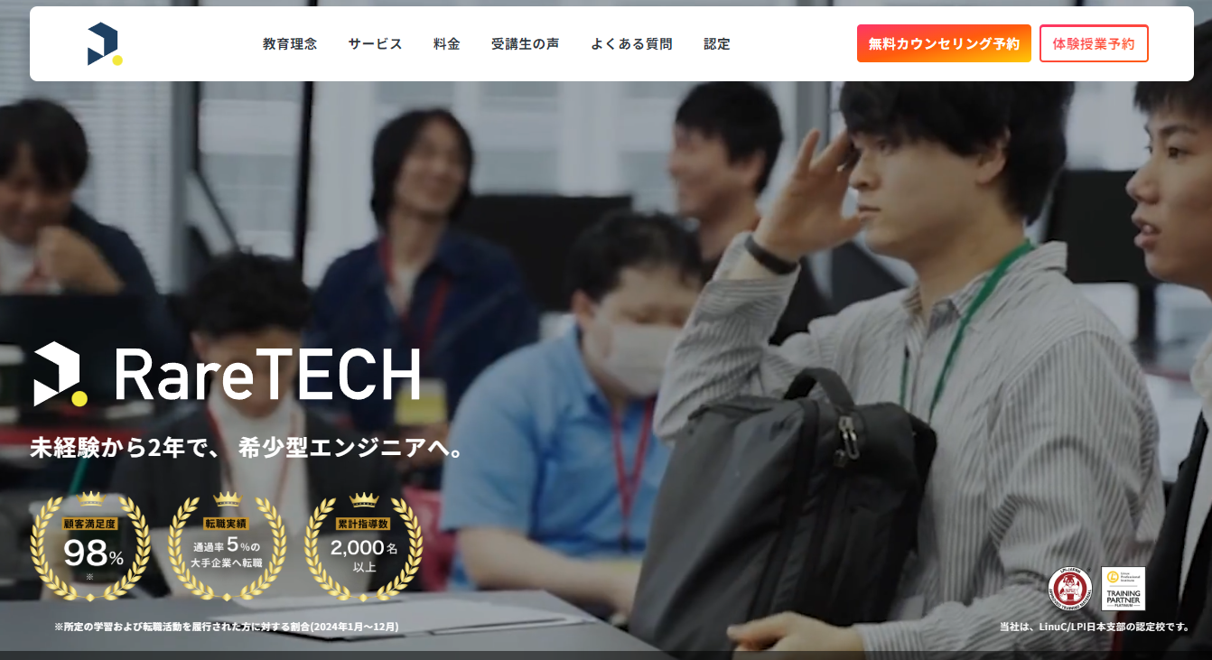 レアテックは、実務で使える実践的なAI開発スキルを習得できるスクールです。