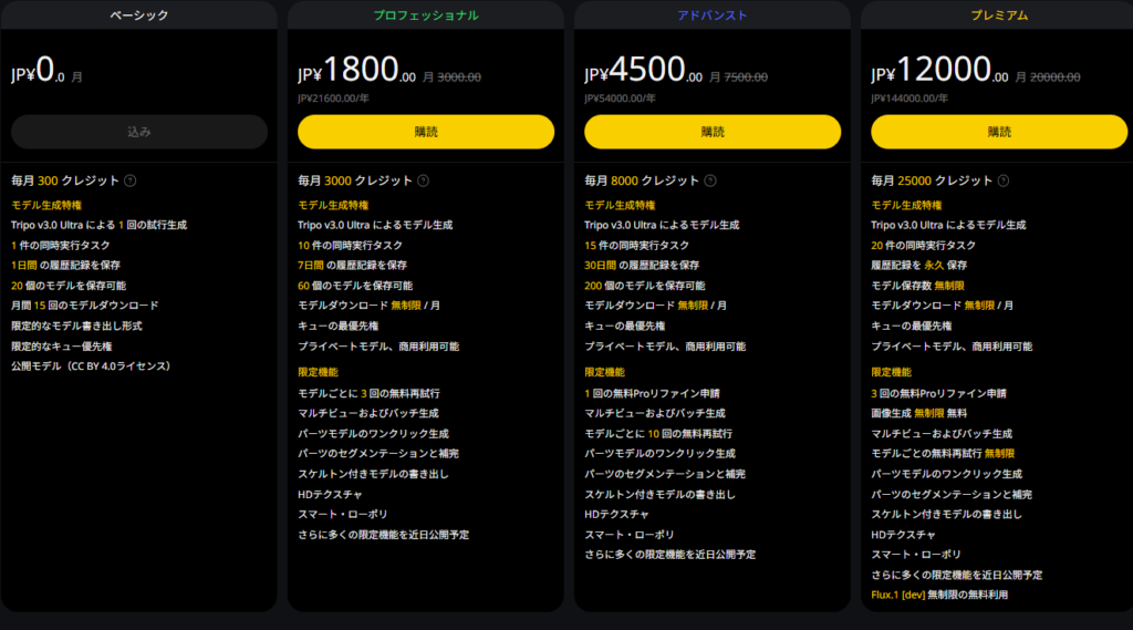 生成スピードも速く、編集機能も充実していて、趣味で3D制作を始めたい人にはかなりおすすめです。