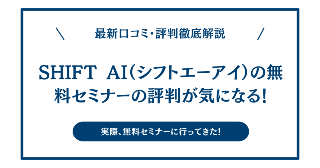 SHIFT AI(シフトエーアイ)無料セミナーの口コミや評判は実際どうなのかな、怪しいって言う噂もあるみたいだけど 結論から言うと、SHIFT AI(シフトエーアイ)の無料セ...