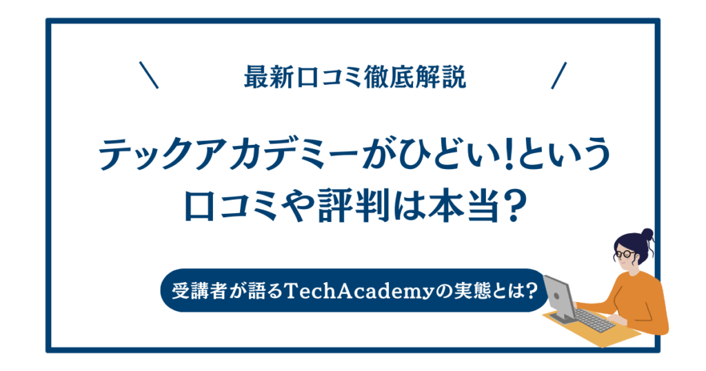 「TechAcademy(テックアカデミー)はひどい」という口コミを見かけて、不安になっていませんか? せっかく学習を始めたいと思っても、失敗したくないという気持ちは当然... -